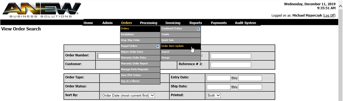 https://orderitemsupdate.anewbiz.net in your browser, or second, by selecting option